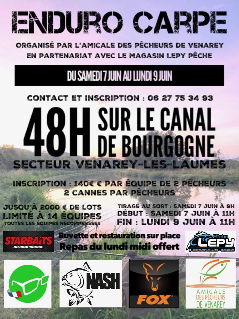 Les 07, 08 et 09 juin 2025, 3ème édition de notre enduro carpe